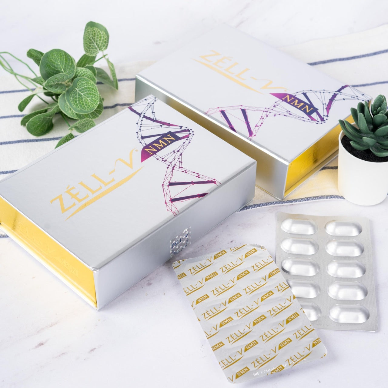 All four cell factors in the names of Nicotinamide Mononucleotide, Resveratrol, Memophenol® and Astaxanthin within each capsule of ZÉLL-V NMN are systematically procured via the most advanced Enzymatic technique, which is exclusively researched and developed to isolate and extract the active organic ingredients. With astaxanthin and resveratrol as active ingredients, it works by activating certain genes that are involved in regulating metabolism and protecting the body against damage caused by free radicals.A concentration of 500mg of this uniquely formulated 4-ingredient extract is encapsulated to provide a precise, 4-pronged anti-ageing approach to target ageing at its core.